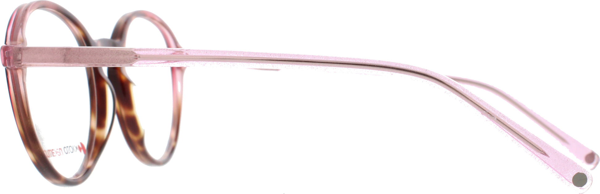 Kiotonakamura steht für ausgefallene Farbkombinationen. Dieses Modell hat eine rotbraune Front und von hinten und in den Innenseiten ist sie rot-rosa. Eine schicke Kombinationen für alle, die auf Farbe stehen. Ein Hingucker ist der doppelte Rahmen, der sich seitlich anschmiegt. Damit liegt diese Fassung voll im Trend.