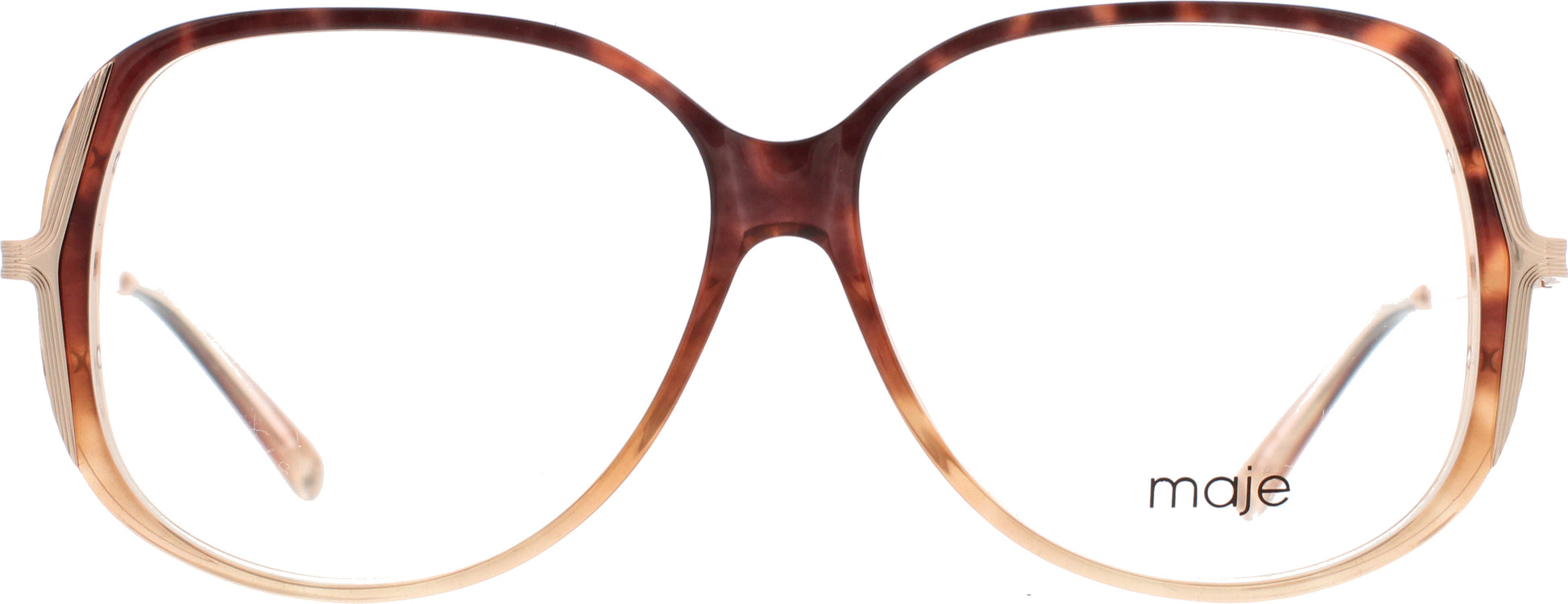 Setze ein stilvolles Statement: Die Maje 1028 kombiniert eine großzügige, weiche Quadrat‑/Butterfly‑Form mit einem edlen Havanna‑zu‑Beige‑Verlauf an der Front. Filigrane metallische Bügel in einem warmen Gold‑/Roséton runden den Look minimalistisch ab – leicht, elegant und alltagstauglich.