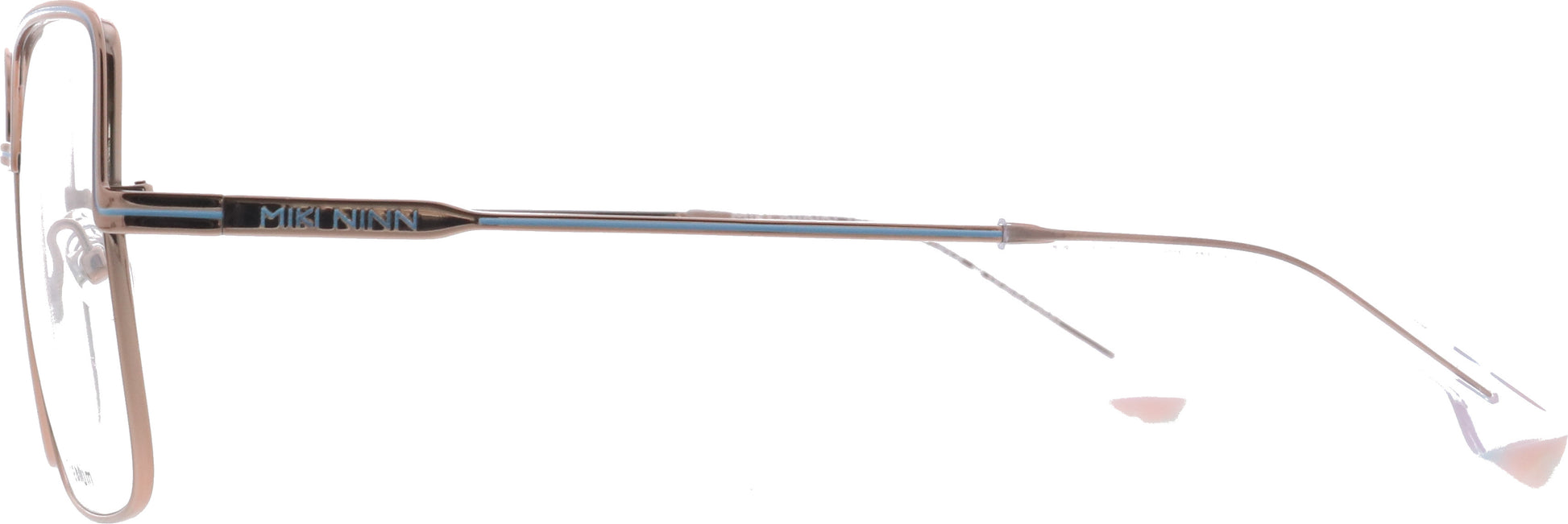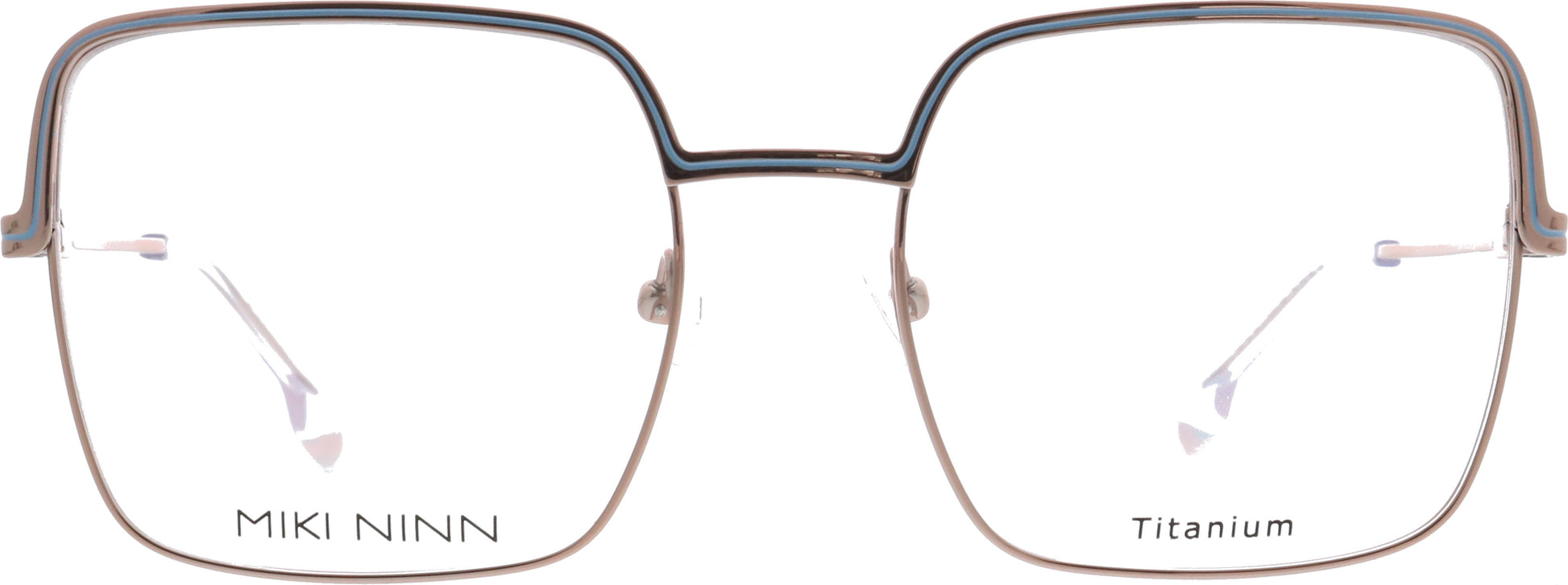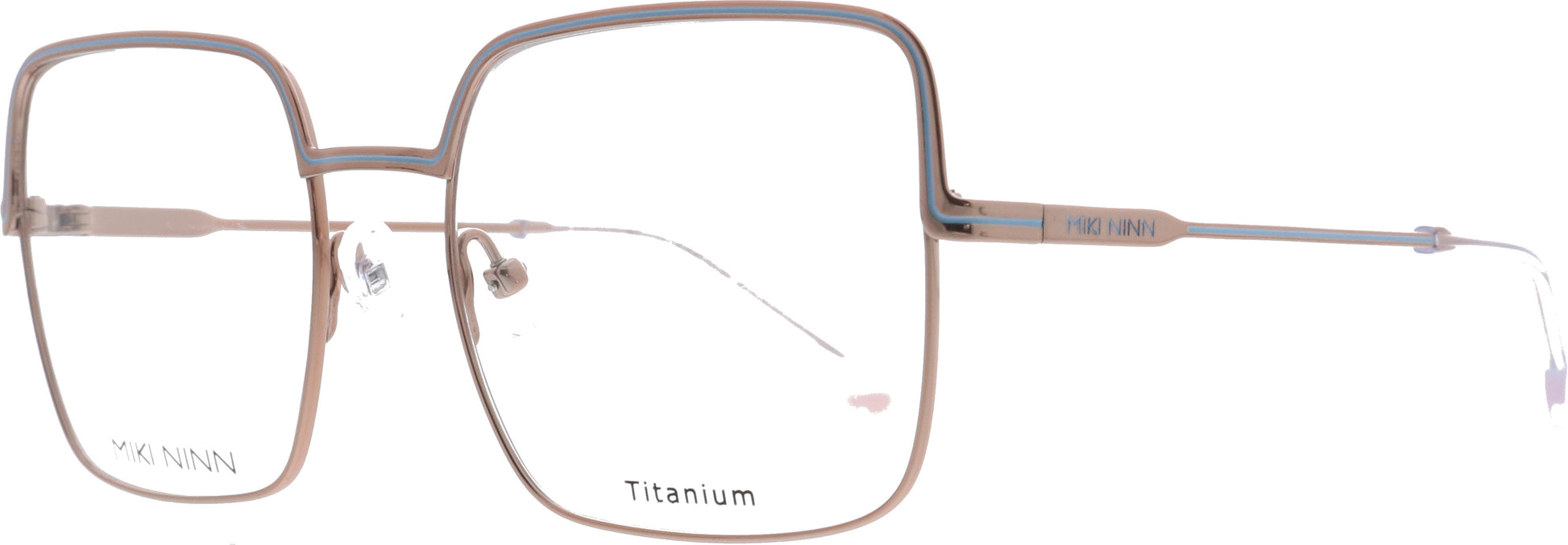 Sehr stylische Damen Metallfassung von Miki Ninn. Sie ist aus Titan gefertigt und somit leicht und angenehm zu tragen. Ihre große und viereckige Glasform liegt voll im Trend und ist sicherlich auch als Sonnenbrille ein Hingucker. Der Rahmen ist in roségold gehalten und wird von einem dezenten babyblau unterbrochen.
