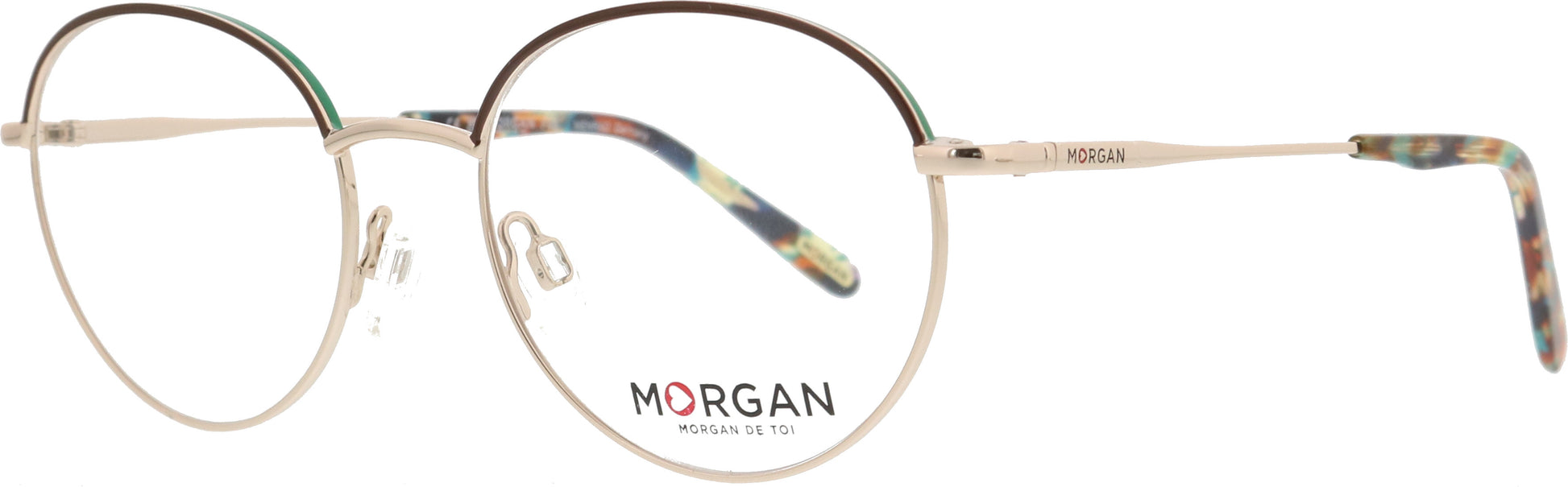 Morgan präsentiert eine exklusive Markenfassung für Damen, die Eleganz und Stil auf höchstem Niveau verkörpert. Die auffällige Farbgebung verleiht der Brille eine anspruchsvolle Note. Das edle Braun-gold-Design fügt einen Hauch von Luxus hinzufügt. Die kleine ovale Form der Fassung kombiniert modernen Chic mit klassischer Raffinesse.