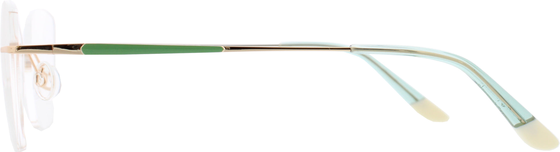 Eleganz trifft Leichtigkeit: Die Robin Look 120-01 ist eine moderne Damenbrille in stilvoller Schmetterlingsform, die durch ihr randloses Design besonders filigran und edel wirkt. Die goldfarbenen Bügel mit grünen Einlegern setzen einen raffinierten Akzent und verleihen der Brille eine frische, modische Note. Dank ihres leichten Materials bietet die Brille höchsten Tragekomfort – ideal für den Alltag und besondere Anlässe. Die Kombination aus eleganter Linienführung und zeitgemäßem Design macht dieses Modell zum perfekten Accessoire für stilbewusste Frauen, die Wert auf Qualität und Ästhetik legen.
