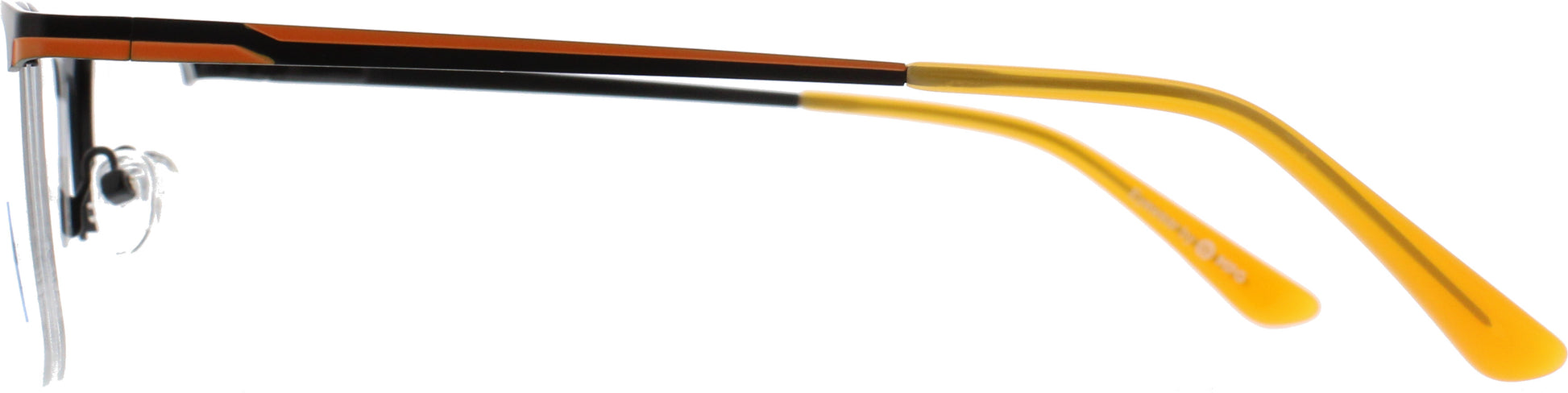 Elegante Metallbrille für Herren aus der aktuellen Robin Look Kollektion. Diese Halbrand Herrenfassung überzeugt mit einem zeitlosen schwarzen Nylor-Rahmen und stilvollen orangen Akzenten. Die schwarzen Kunststoffbügel sorgen für angenehmen Tragekomfort und einen sportlich-eleganten Look, perfekt für Alltag und Business.