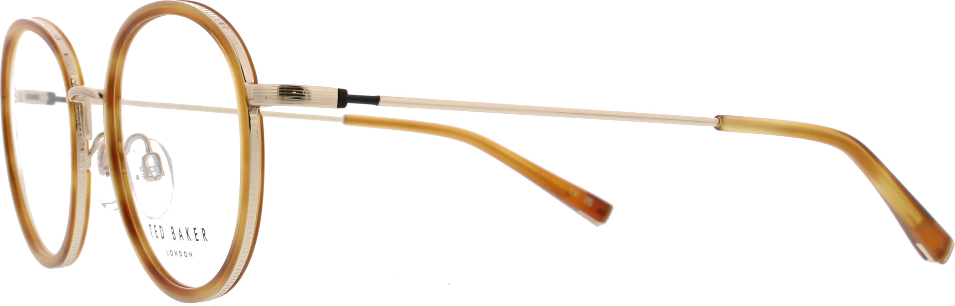 Entdecken Sie die zeitlose Eleganz und luxuriöse Qualität der runden Brille von Ted Baker. Diese exklusive Kunststofffassung aus hochwertigem Kunststoff in einem anmutigem Braunton bietet Ihnen einen eleganten und stilvollen Look, der alle Blicke auf sich zieht. Verfeinert wird das Mittelteil, durch dezent elegant verzierte Metall-Kunststoff-Bügel.