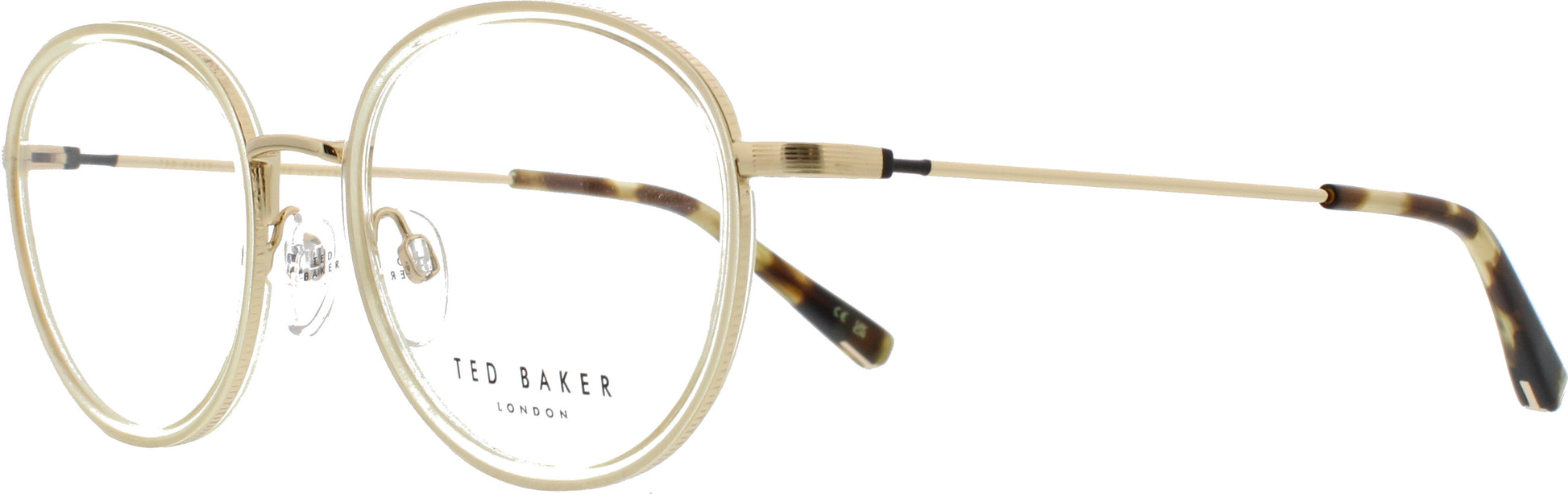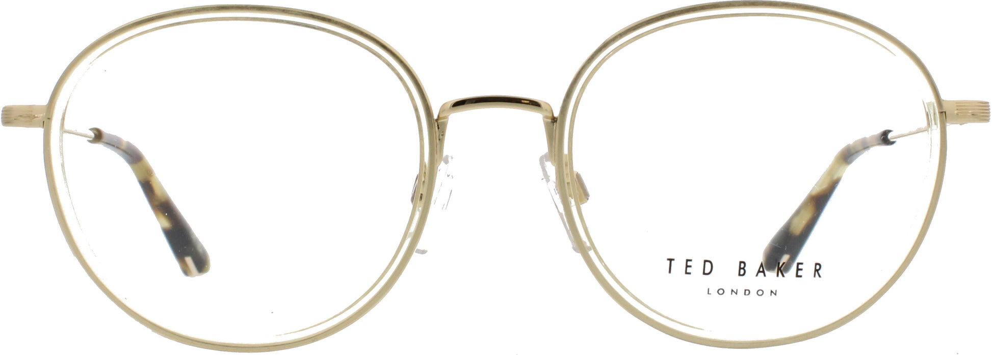 Entdecken Sie die zeitlose Eleganz und luxuriöse Qualität der runden Brille von Ted Baker. Diese exklusive Kunststofffassung aus hochwertigem Kunststoff in einem anmutigem Goldton bietet Ihnen einen eleganten und stilvollen Look, der alle Blicke auf sich zieht. Verfeinert wird das Mittelteil, durch dezent elegant verzierte Metall-Kunststoff-Bügel.