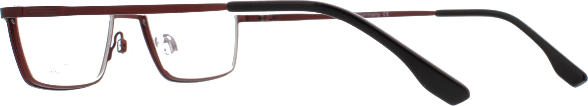 Hübsche Halbrandlesebrille für Sie und Ihn. Schlichte rechteckige Form in Rot mit schwarzen Bügeln.