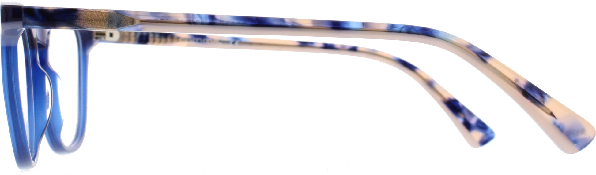 Die comma, Brille aus handmade acetate kombiniert eine klare, moderne Soft‑Square/rectangular Front in intensivem Blau mit marmorierten Bügeln in Blau‑Creme. Leicht, robust und alltagstauglich. Die sanft gerundete Form wirkt zeitlos und steht vielen Gesichtsformen. Die mittelgroße Front mit sanft gerundeten Ecken harmoniert besonders mit ovalen, runden und herzförmigen Gesichtsformen. Die klare Linienführung sorgt für einen präzisen, aufgeräumten Look – von casual bis business.