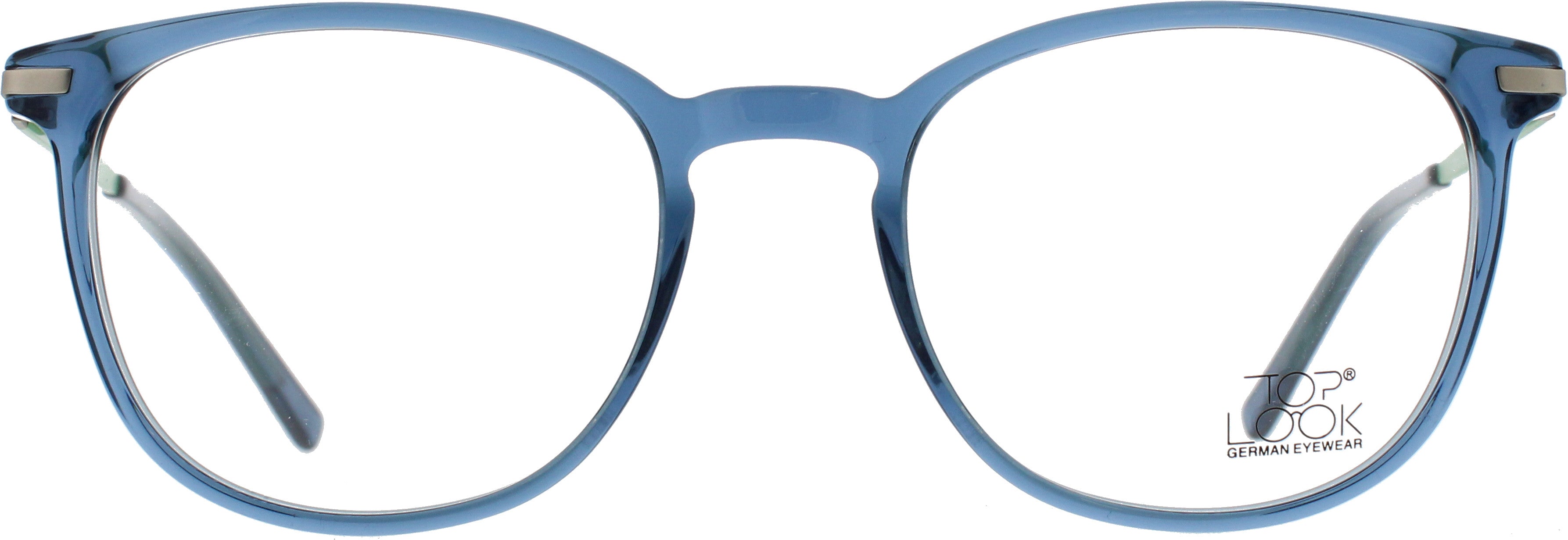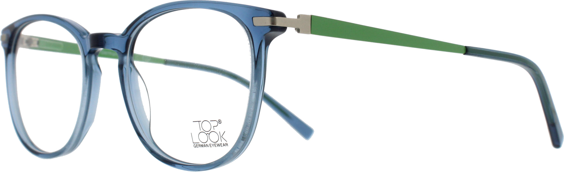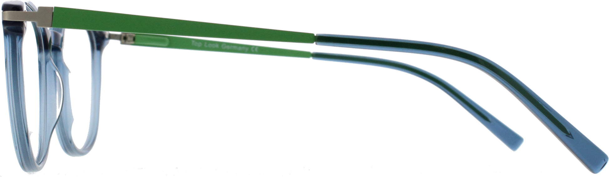 Die Top Look German Eyewear Brille kombiniert modernes Design mit angenehmem Tragekomfort und einer frischen Farbkombination. Die transparente Front in kühlem Blau verleiht der Fassung einen klaren, leichten Look, während die grün‑matten Metallbügel stilvolle Akzente setzen. Das Zusammenspiel von Farbe, Form und Material macht diese Brille zu einem echten Hingucker. Die weich abgerundete Frontform sorgt für eine harmonische Silhouette und steht vielen Gesichtsformen ausgezeichnet. Dank des leichten Acetats trägt sich die Brille besonders angenehm, während die schmalen Metallbügel für Stabilität und Flexibilität sorgen.